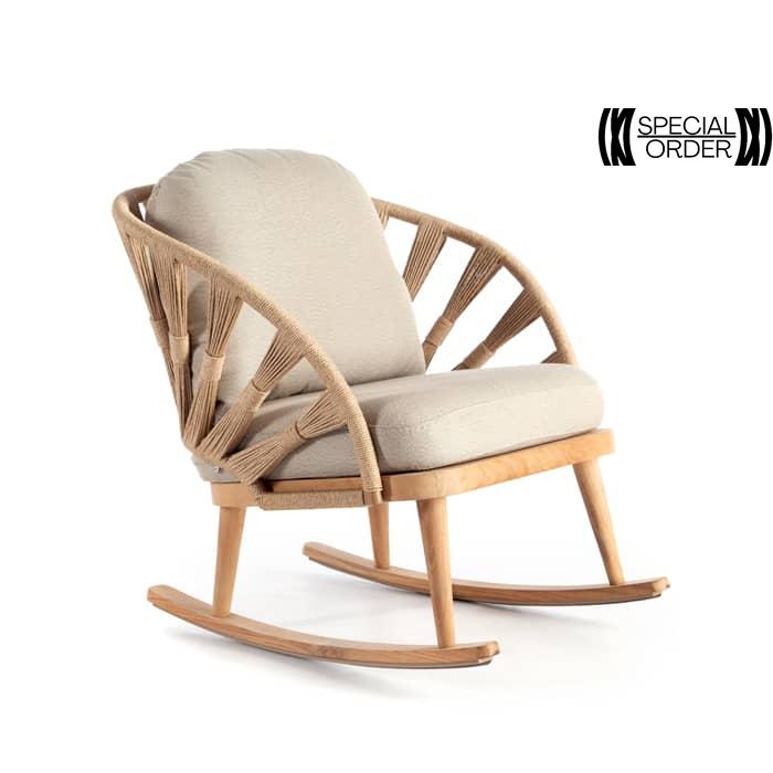 Relax and unwind in our charming KRABI Rocking Chair. Crafted with natural teak wood, it offers a soothing rocking motion while enjoying the outdoors. Experience serene comfort with a touch of elegance.