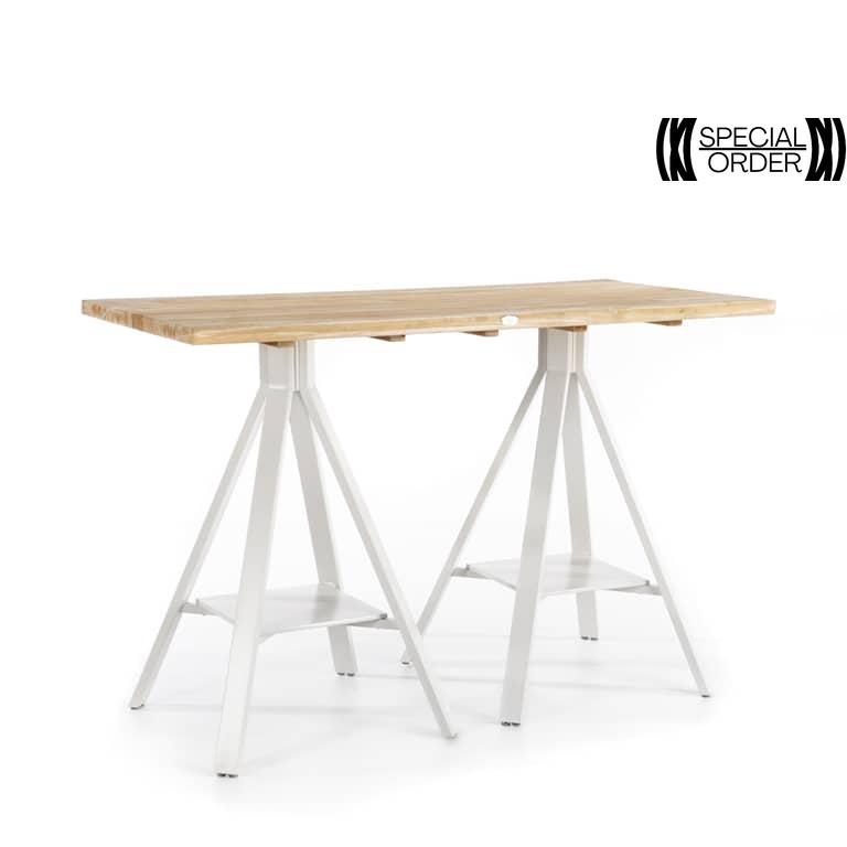 Create a stylish and inviting outdoor bar area with the ALASKA Rectangular Bar Table by Skyline Design. Crafted with a combination of natural teak wood and durable aluminum, this rectangular bar table offers a sleek and modern design that complements any outdoor space. Whether hosting a casual get-together or enjoying a refreshing drink, this versatile bar table provides a comfortable and chic setting for socializing and relaxation.