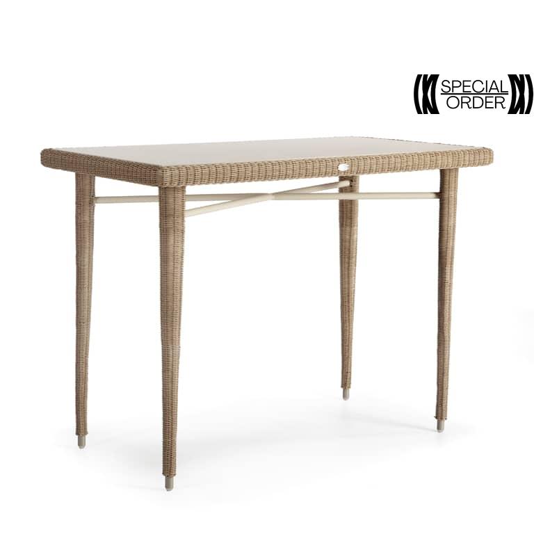 Enhance your outdoor bar space with the Arena Bar Table. Its impeccable HDPE fiber and aluminum frame design complement any setting. Opt for a sleek glass or Porcelanic tabletop for a touch of sophistication.