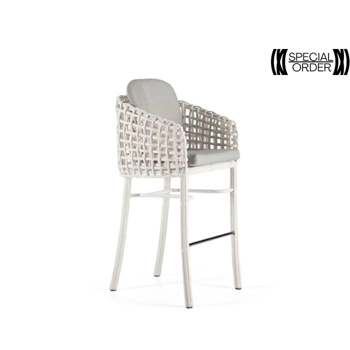 Elevate your outdoor bar experience with the Dynasty Barstool. Crafted with Mushroom fiber and adorned with comfortable Dyed Acrylic cushions, this barstool exudes modern elegance. Its sturdy coated aluminum frame provides stability, while the footrest offers added support. Whether enjoying drinks or casual conversations, the Dynasty Barstool is the perfect complement to your outdoor entertainment area, combining style and convenience in one exceptional piece.