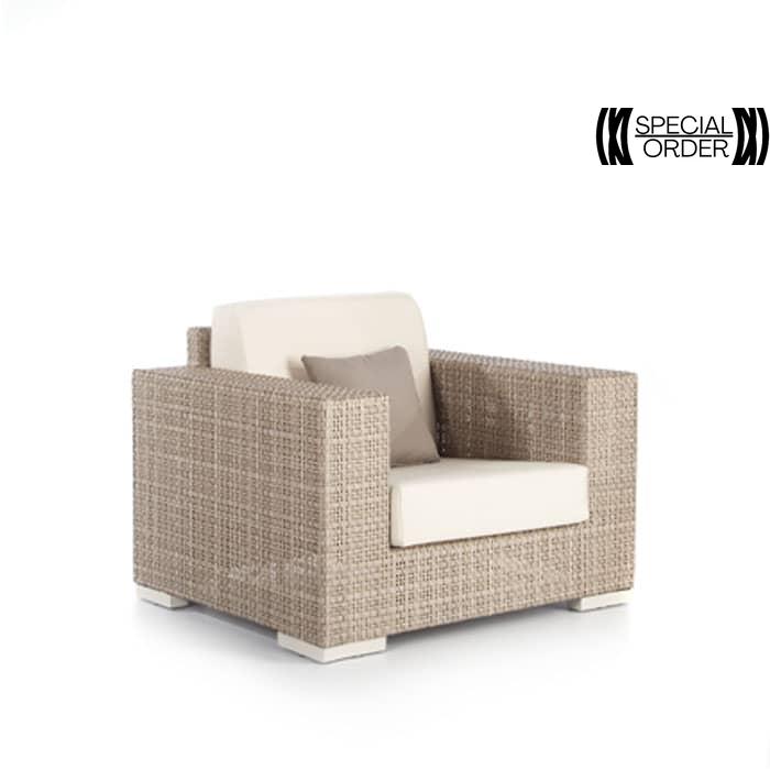 Elevate your outdoor lounging with the PALOMA Armchair. Immerse yourself in comfort, embraced by the unique FLAT-FLAT Seashell weave. The Dyed Acrylic cushions add a touch of luxury, making this armchair an exquisite addition to any space.