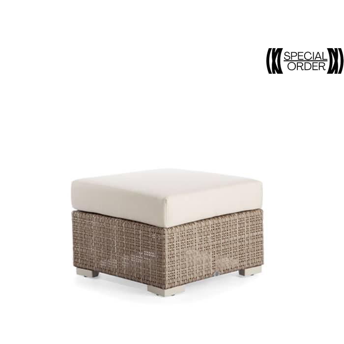 Enhance your PALOMA seating arrangement with the Ottoman. The distinctive FLAT-FLAT Seashell weave adds a touch of texture, while the Dyed Acrylic cushion offers comfort for your feet.