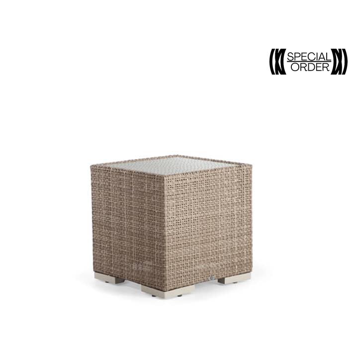 Complete your PALOMA lounging area with the Side Table. The FLAT-FLAT Seashell pattern enhances its design, while the glass top offers a convenient spot for your essentials.