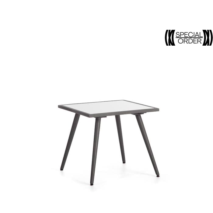 Enhance your outdoor seating with the SERPENT Side Table. With options for a chic glass or resilient porcelain top, paired with an aluminum base, it adds both style and convenience to your outdoor space.